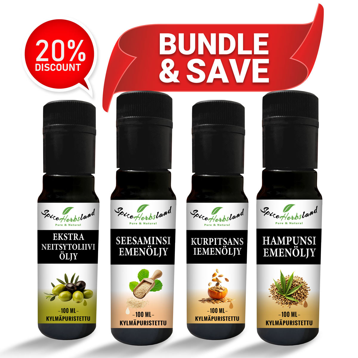 - Enkelturskryddor, rena eteriska oljor och kallpressade oljor.